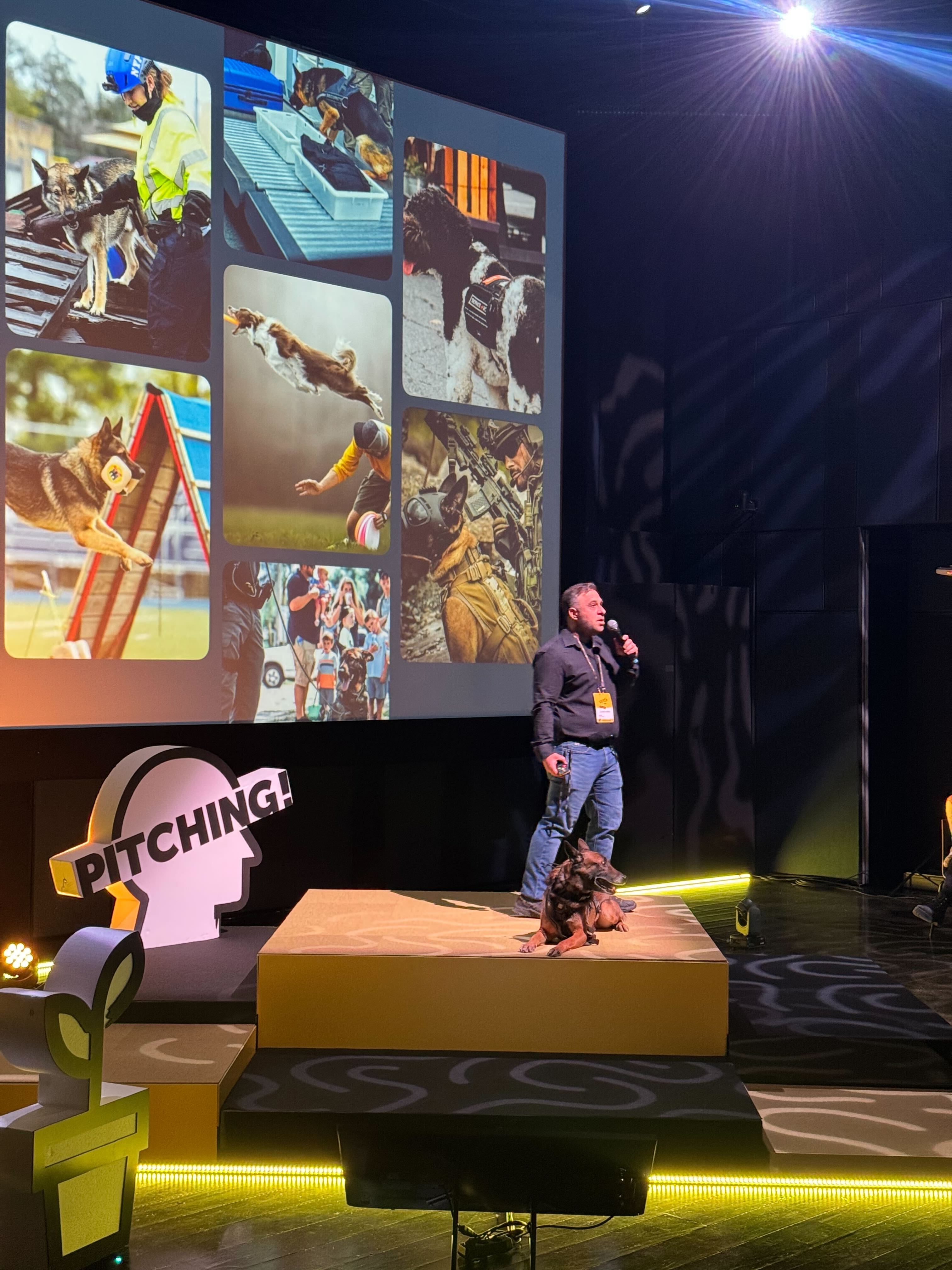 This was a hybrid between a product pitch and a K9 capabilities showcase. Echo ran an obedience demo live on stage while I presented DogBase to a security-focused audience.